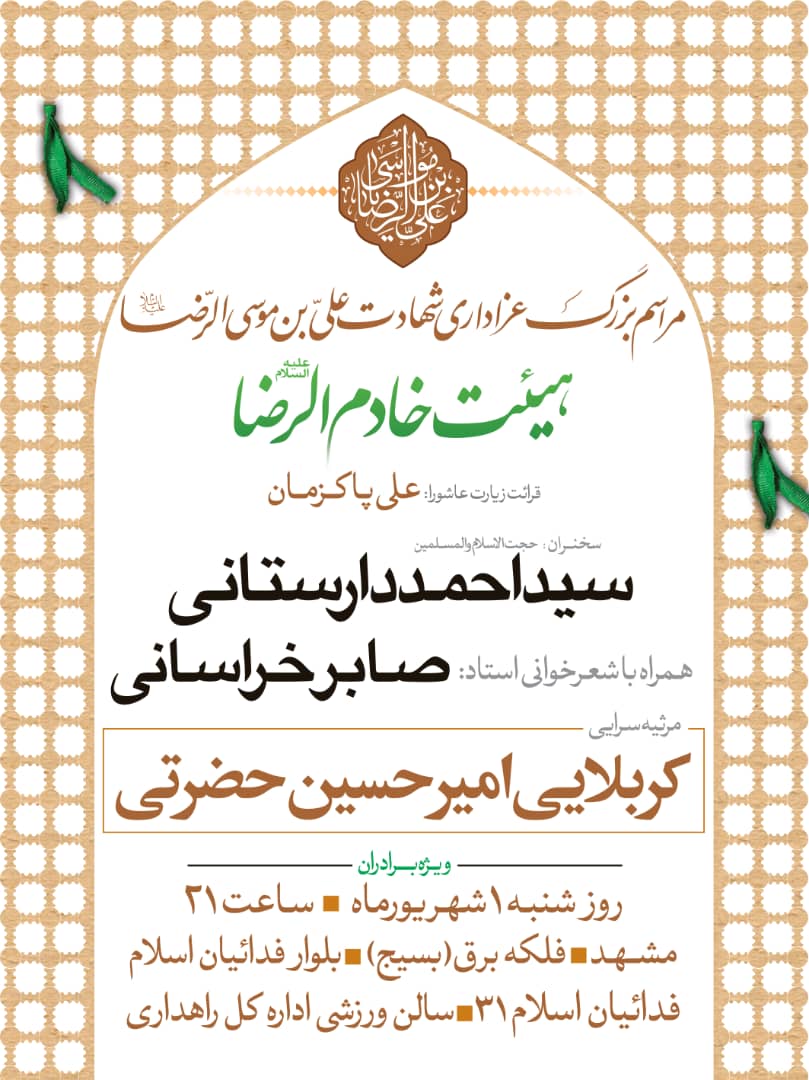 مراسم بزرگ عزاداری شهادت علی بن موسی الرضا علیهالسلام